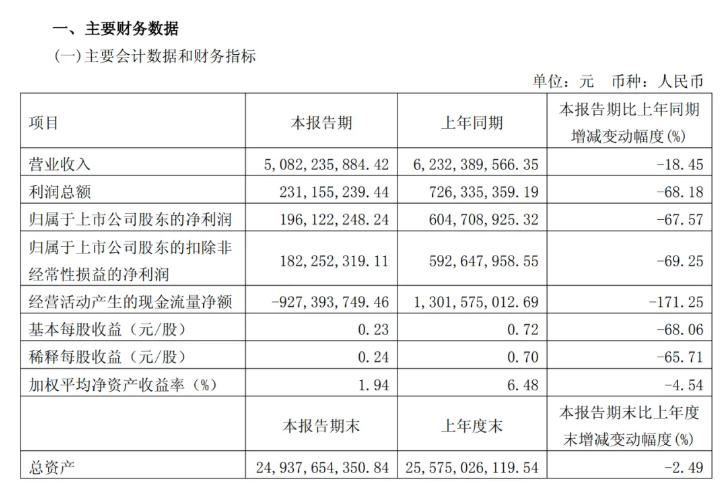 营收超50亿,同比下降超18%;净利润约2个亿,同比暴跌超67%;